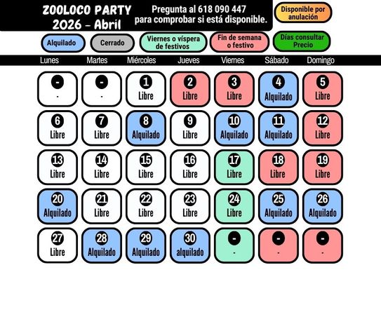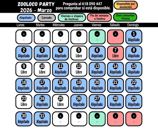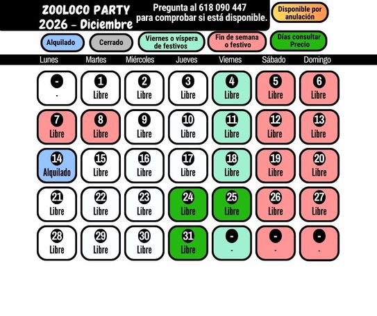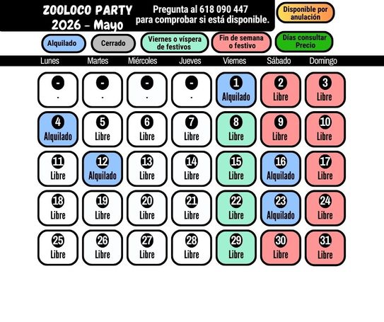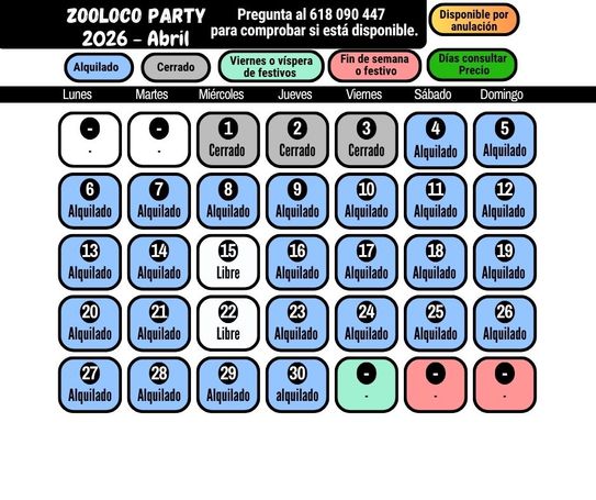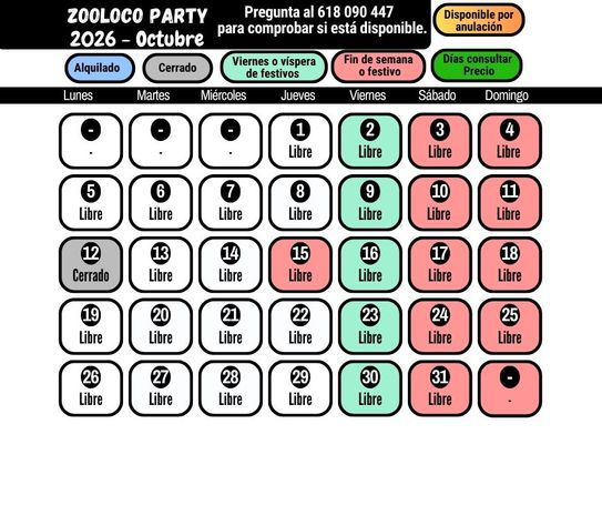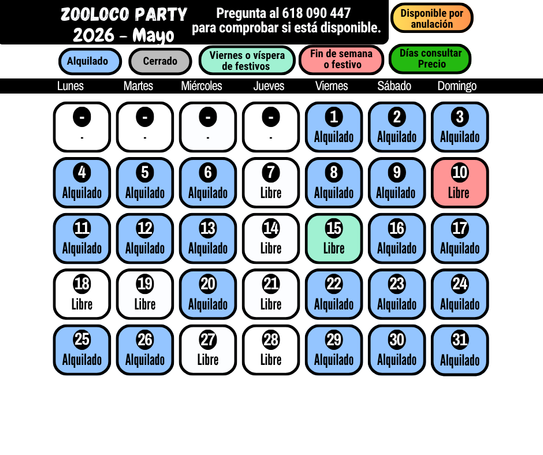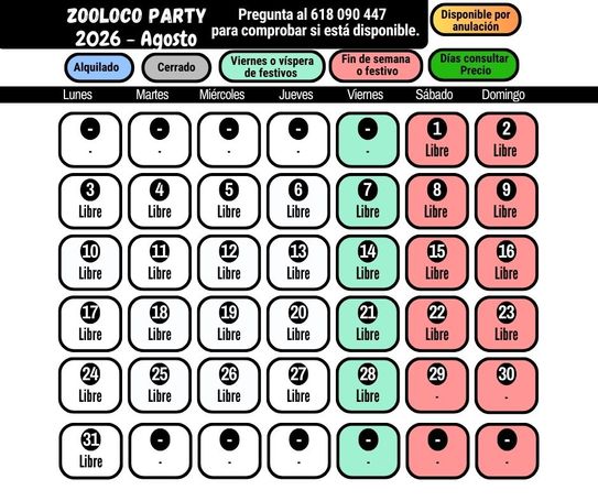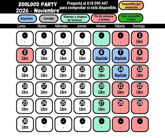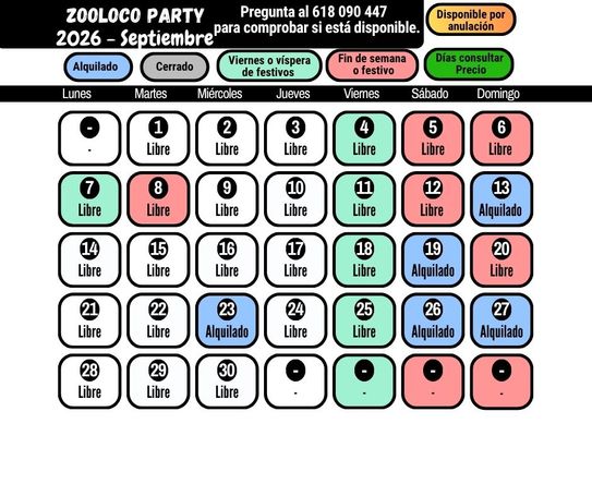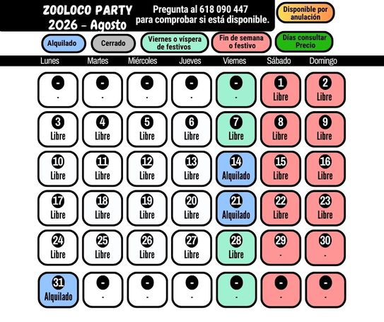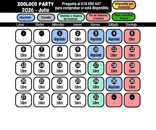 Aquí puedes ver los días disponibles. Para otras fechas, por favor consulta.